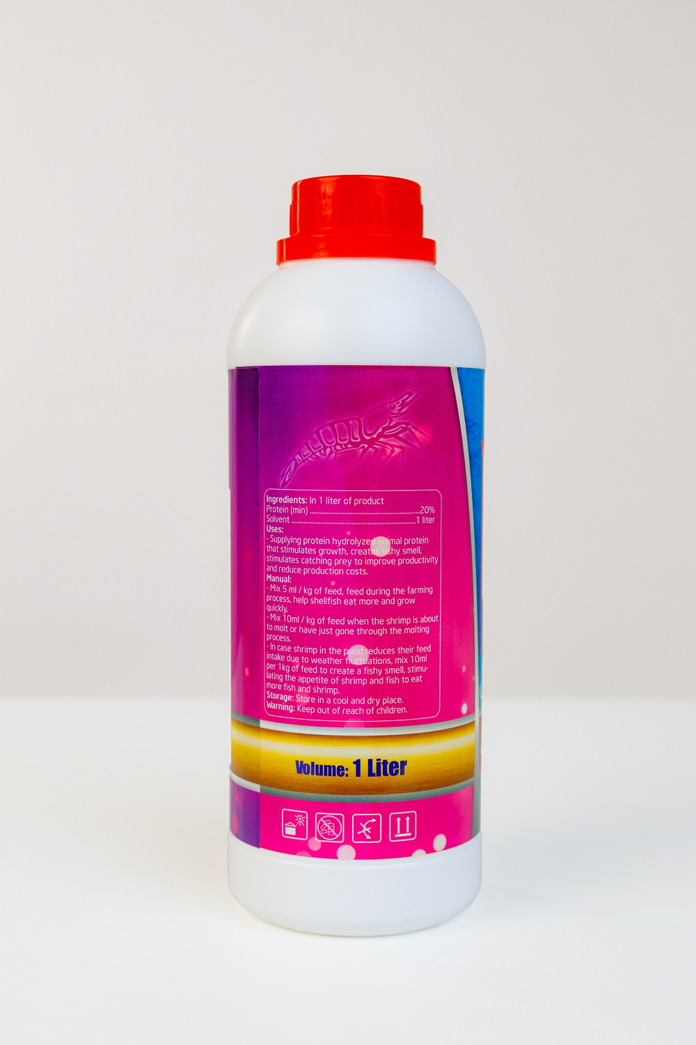 - Trường hợp tôm trong ao giảm ăn do có biến động về thời tiết trộn 10 ml/kg thức ăn để tọa mùi tanh kích thích tính thèm ăn của tôm,cá để tôm,cá ăn nhiều hơn.