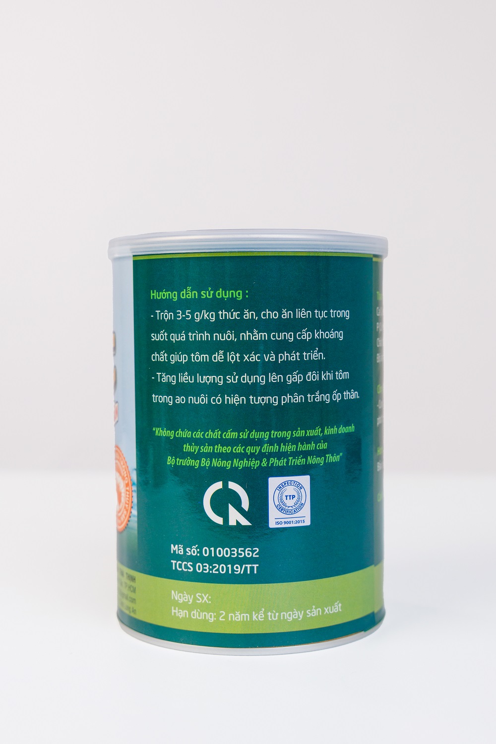 - Trộn 3-5 g/kg thức ăn, cho ăn liên tục trong suốt quá trình nuôi,nhằm cung cấp khoáng chất giúp tôm dễ lột xác và phát triển.